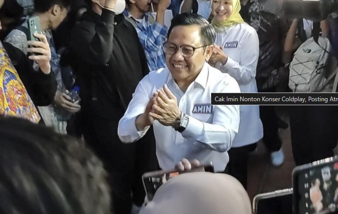 Dalam unggahan di Instagramnya, @cakiminnow, Ketua Umum PKB itu sedang berdiri dan mengarahkan ponsel untuk mengabadikan momen menonton konser Coldplay. Suara vokalis Coldplay Chris Martin terdengar menyanyikan lagu Viva La Vida. Terlihat pula istri Cak Imin Rustini Murtadho berdiri di sampingnya.